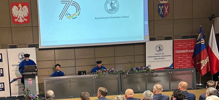 Podczas uroczystości 70-lecia Wydziału Inżynierii Środowiska i Geodezji Uniwersytetu Rolniczego w Krakowie okolicznościowymi medalami wyróżnieni zostali pracownicy naszej Katedry profesor Barbara Tchórzewska-Cieślak oraz profesor Janusz Rak.